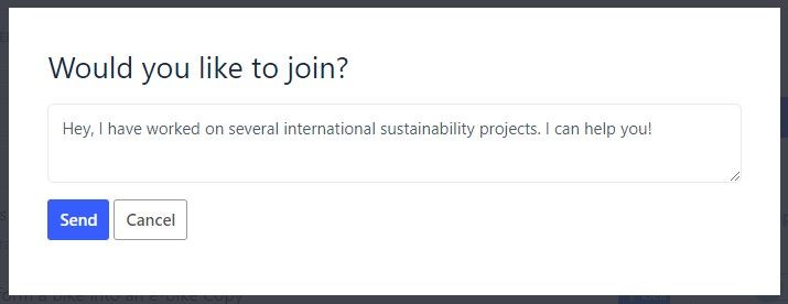 Les membres peuvent postuler en cliquant sur un bouton pour exprimer leur intĂ©rĂŞt. Les auteurs et les coauteurs des projets et des idĂ©es peuvent ensuite accepter ou refuser les candidatures. Une fois acceptĂ©s, les membres deviennent des membres de l’Ă©quipe du projet.