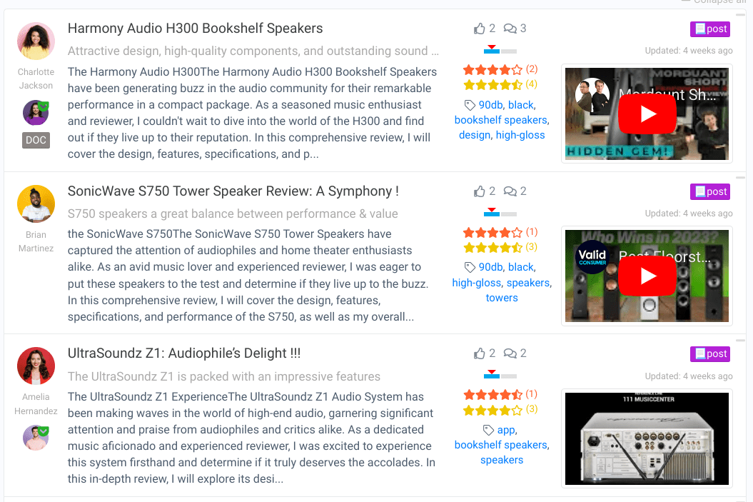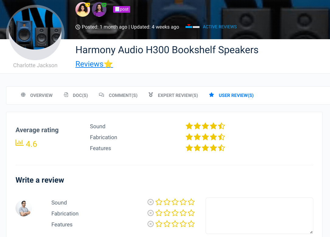 Ces notations peuvent être affichées sous forme de notation étoilée multi-critères, permettant aux utilisateurs de rapidement comprendre la qualité globale de la contribution.